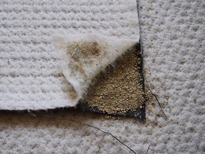 膨潤防水毯是一種用于人工湖泊水景、垃圾填埋場、地下車庫、樓花園、水池、油庫化學(xué)品堆場等防滲漏的土工合成材料,它是由高膨脹性的鈉基膨潤土填充在特制的復(fù)合土工布和無紡布之間,用針刺法制成的膨潤土防滲墊可形成許多小的纖維空間,是膨潤土顆粒不能像一個方向流動,遇水時在墊內(nèi)形成均勻高密度的膠狀防水層,有效的防止水的滲漏。膨潤土防水毯按生產(chǎn)工藝可分為:針刺法鈉基膨潤土防水毯、針刺覆膜法鈉基膨潤土防水毯以膠粘法鈉基膨潤土防水毯。 針刺覆膜法鈉基膨潤土防水毯,是在針刺鈉基膨潤土防水毯的非織造土工布的外表面上復(fù)合一層高密度聚乙烯土工膜。